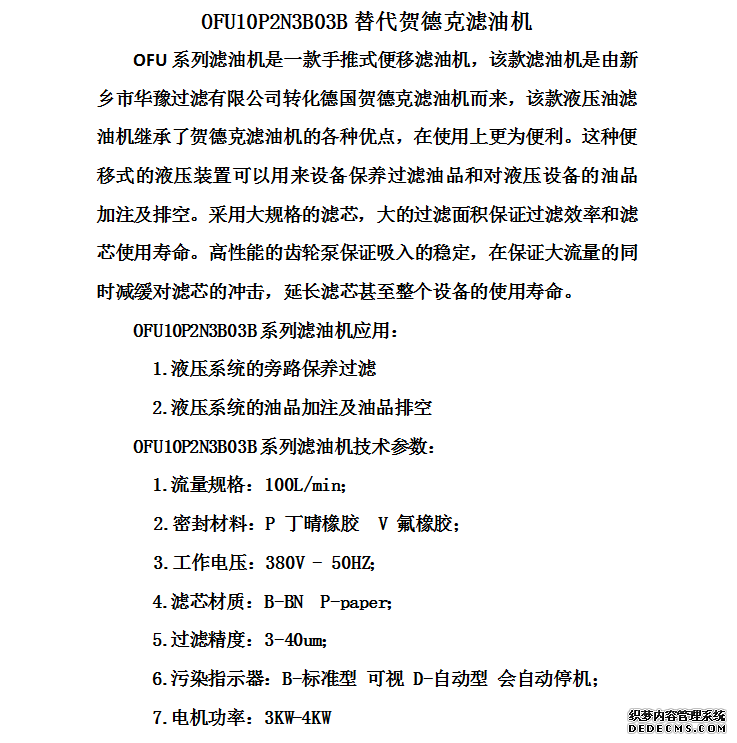 OFU10P2N3B03B替代賀德克濾油機